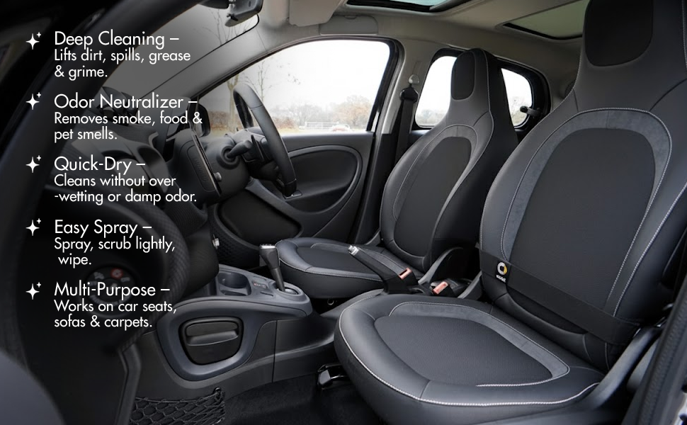 - Safe on Fabrics – Suitable for use on car seats, carpets and most upholstery materials.